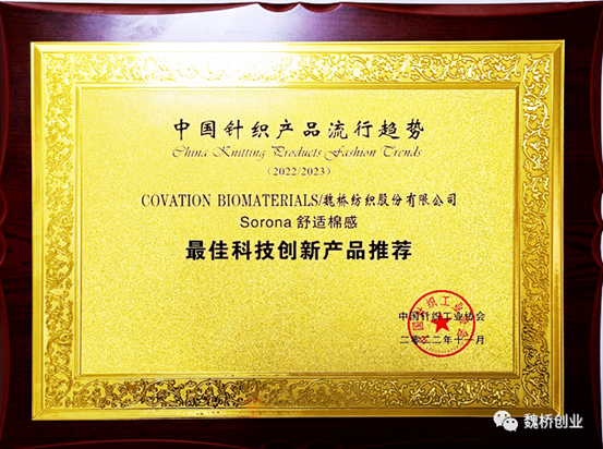 在中國(guó)針織工業(yè)協(xié)會(huì)與中國(guó)國(guó)際貿(mào)易促進(jìn)委員會(huì)紡織行業(yè)分會(huì)共同主辦的中國(guó)針織產(chǎn)品流行趨勢(shì)發(fā)布活動(dòng)中,魏橋紡織股份有限公司申報(bào)的“sorona舒適棉感”產(chǎn)品經(jīng)中國(guó)針織工業(yè)協(xié)會(huì)專(zhuān)家組審定,獲評(píng)“最佳科技創(chuàng)新產(chǎn)品推薦”。